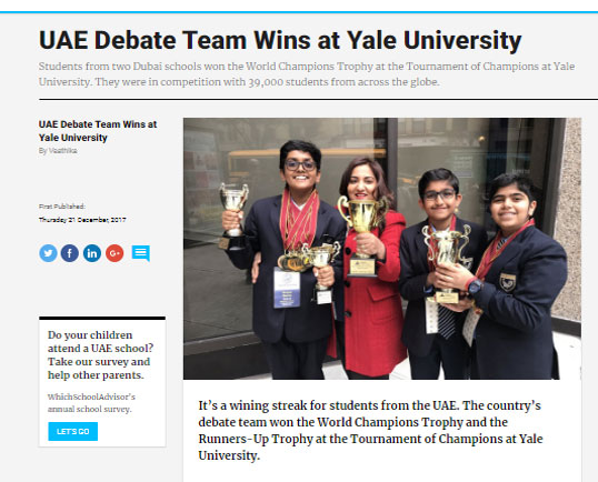 Shruti was also an absolute delight to coach and mentor in The World Scholar’s Cup in which she represented Wellington International School with distinction culminating in her winning the Debate first Place trophy at The Tournament of Champions at Yale University. During her time as such a dedicated scholar she not only achieved at the top level of the tournament but was always demonstrated herself as a superb ambassador for her school with her exemplary conduct throughout win or lose and also included a wonderful performance of her dance recital, which is also another area in which Shruti has shown immense dedication and resilience.